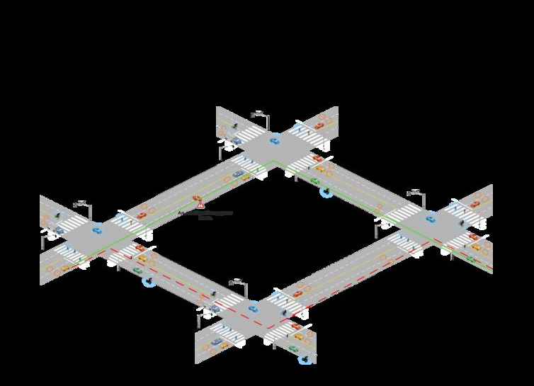 控制器则根据每辆车的优先级(如救护车、警车等特种车辆应优先通行)、速度和位置等信息计算出车辆合适通过路口的速度,并发送到方向盘边的显示器上。如果每位驾驶员都依据自己收到的速度依次通过,便能保证路口的有序通行。当一辆车离开一个交叉口,它就被纳入了下一个交叉口控制器的计算范围。