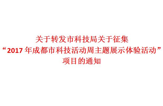 关于转发市科技局关于征集“2017年成都市科技活动周主题展示体验活动”项目的通知