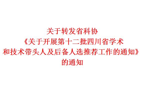 关于转发省科协《关于开展第十二批四川省学术和技术带头人及后备人选推荐工作的通知》的通知